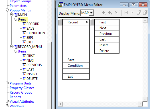 Pop Up menus are those, which are displayed on the screen when we right click on it. Pop Up menu makes any application easier to use it. In Oracle Forms also we can make pop up menus to add different menu items for the operating form. The items for operations such as inserting, saving, deleting and navigating records can be included in the pop up menu. Here I have written some steps for creating pop up menus in Oracle Forms along with their screenshots.